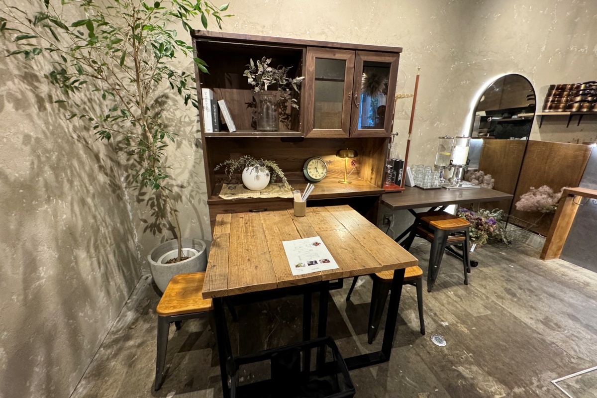 オーナーが、以前この場所にあったカフェの店主と知人だった縁でオープンしたとのことで、店内には前のカフェで使われていた家具やインテリアが活用されています。
