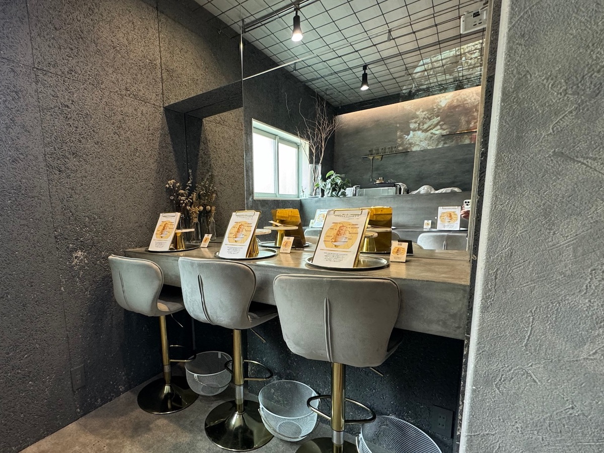 座席はカウンター席のみ。昨年はグループでの来店が多かったようですが、最近はおひとりさまの来店も増えているとのことです。大きな鏡の前の席では、最近SNSでよく見かける鏡に映る自分とドリンクやスイーツを自撮りするのもよさそうです。