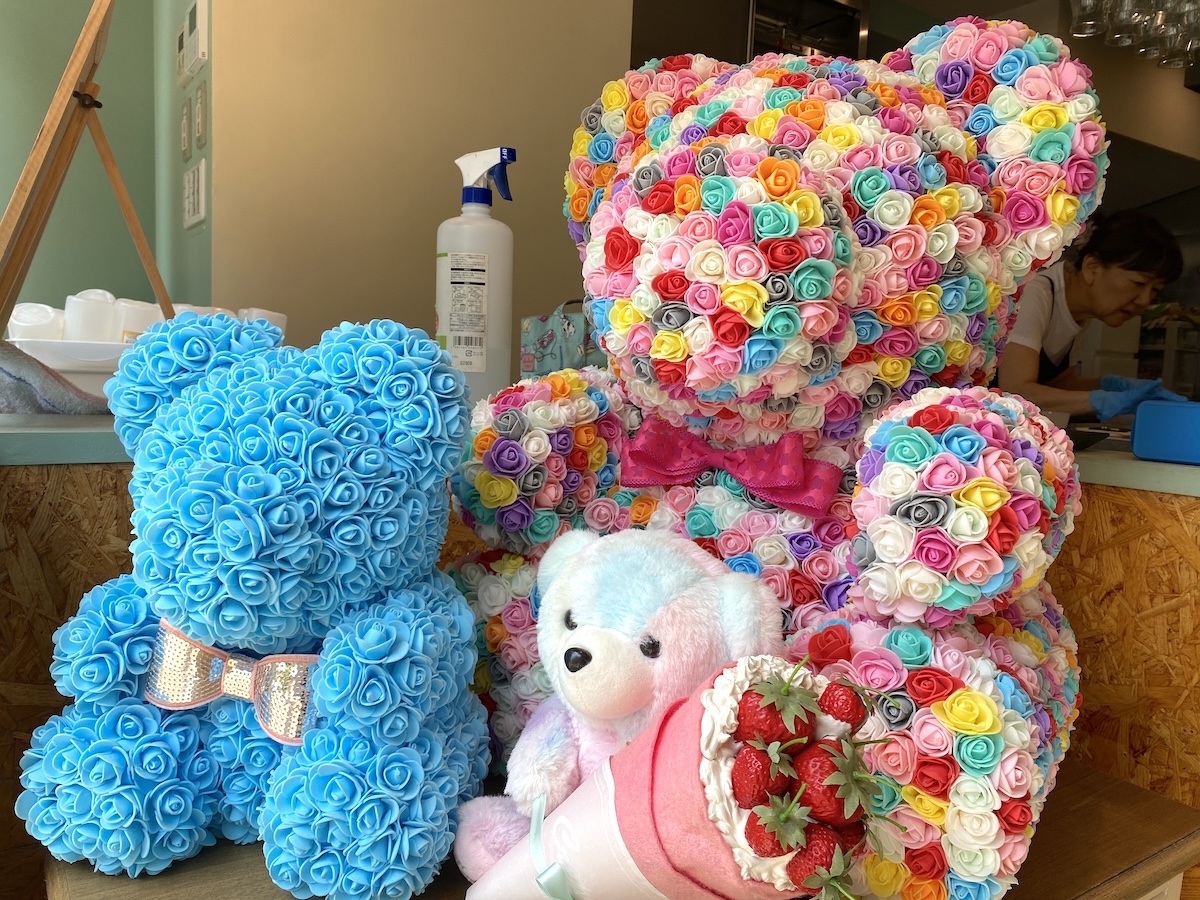 「トゥインクル」の店内は、カラフルなクマのぬいぐるみやアートが飾られたキュートな空間。「トゥインクル」のために作ったオリジナルアイテムが多くあり、写真を撮るお客さんがほとんどだそうです。