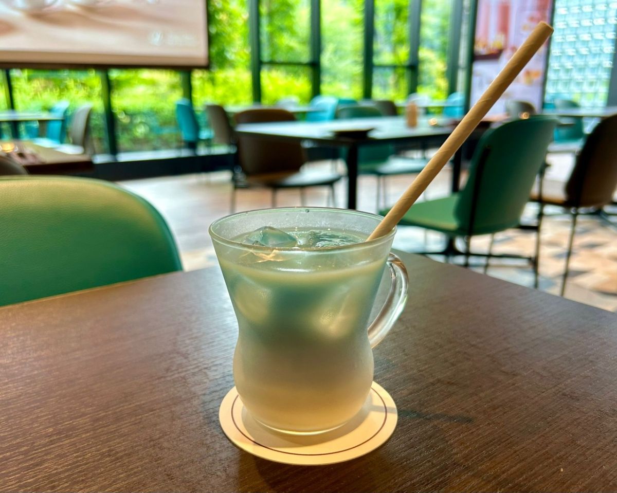 「アイスブルーラテ」はミルクと自然由来の青色が美しいハーブのバラフライピーの組み合わせが新鮮な、フルーティーな香りが引き立つ爽やかドリンク。暑いこの時期に涼しげに映えます。