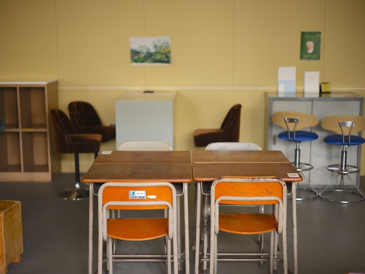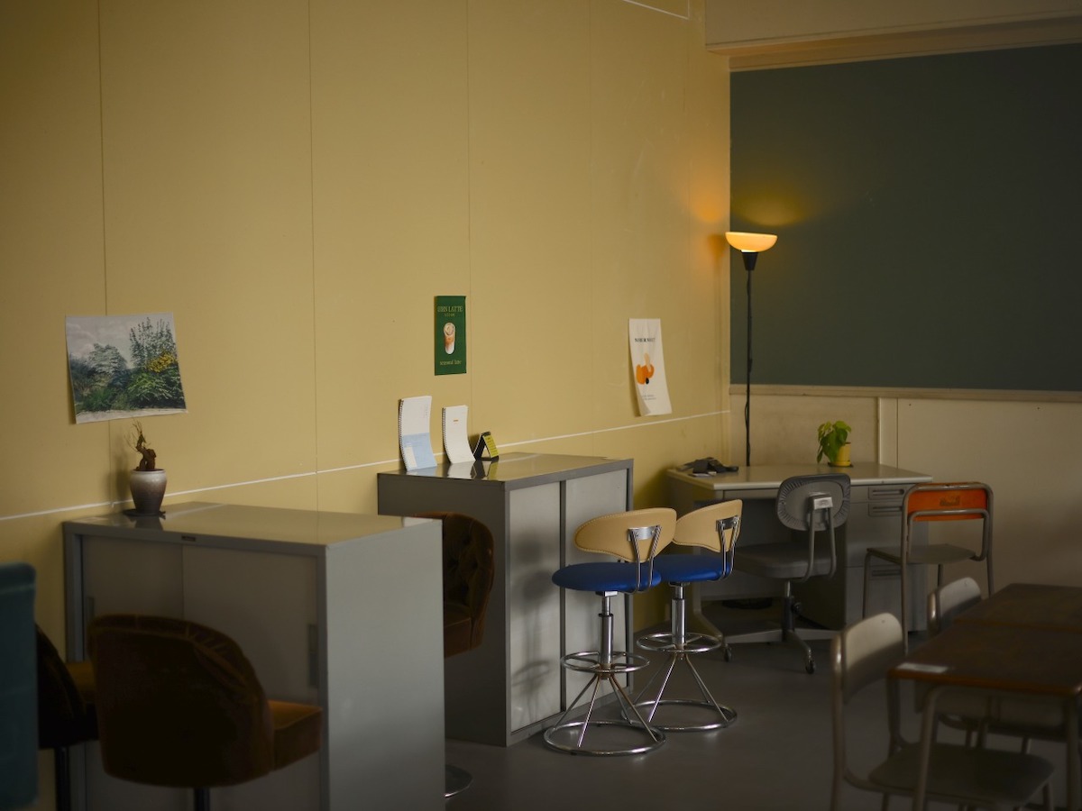 舞台は小学校跡地。元教室で過ごす”エモい”ひととき。