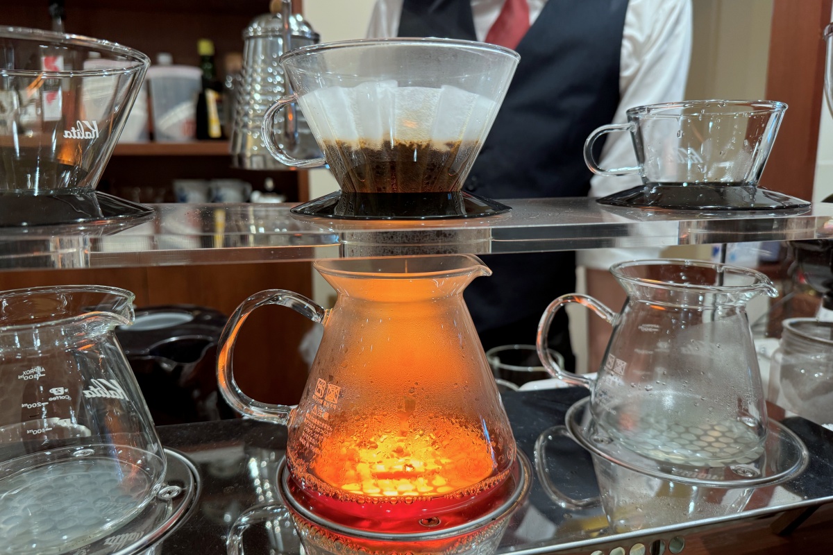 オーダーごとに豆を挽き、目の前で一杯ずつ丁寧にハンドドリップで入れてくれます。店内に漂うコーヒーの香りにうっとり。