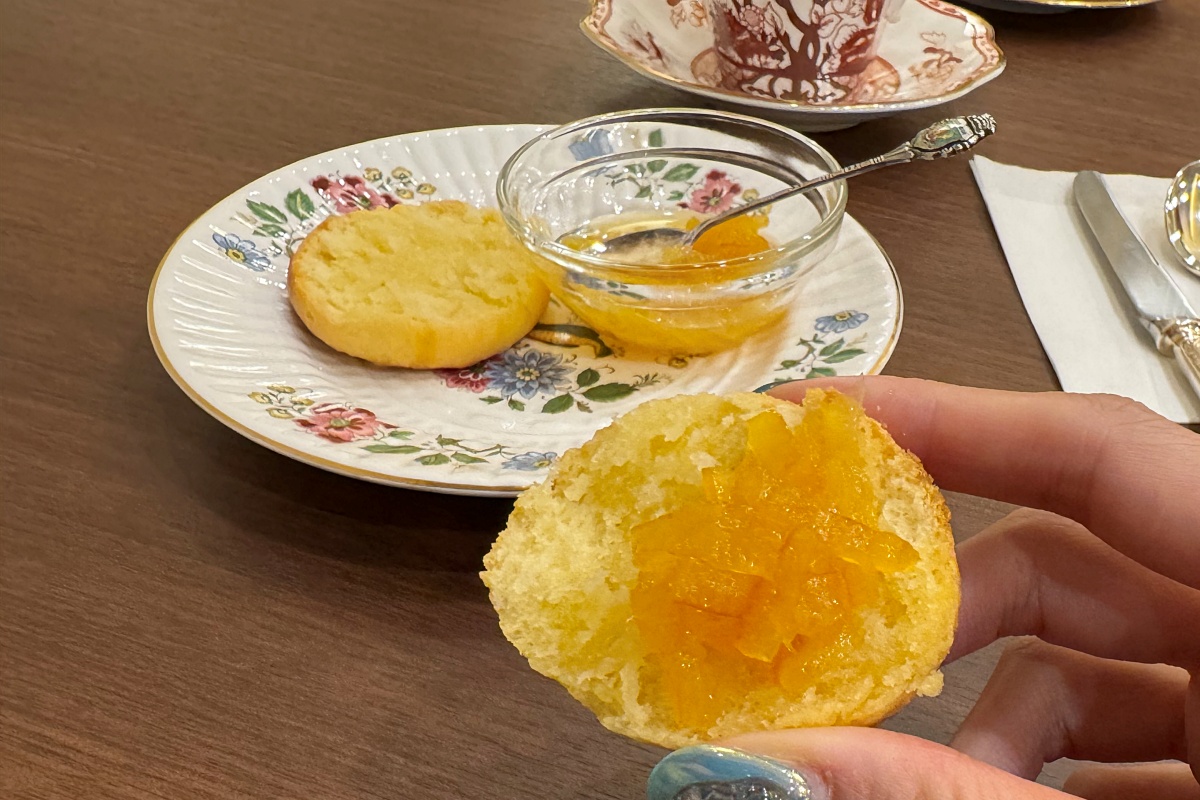 スコーンには季節のフルーツで作った自家製ジャムが添えられ、この日はイチゴ、ブルーベリー、夏みかんのなかから夏みかんをセレクトしました。