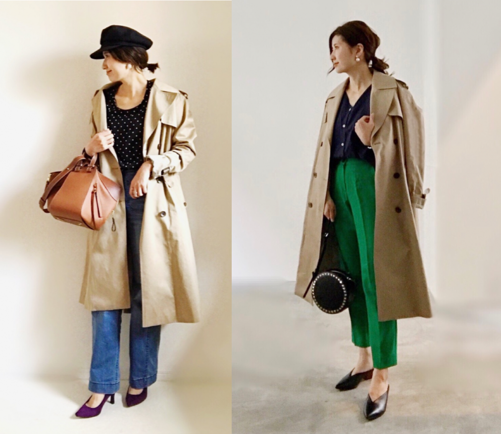 ベージュのトレンチコートはカラーアイテムと合わせて脱地味コーデ