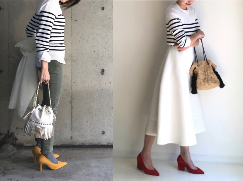 誰もが1着は持っているであろうボーダートップスを高見えコーデに格上げするには、きれいめアイテムを投入すること。例えば、パンプス、ジャケット、センタープレスパンツなどです。