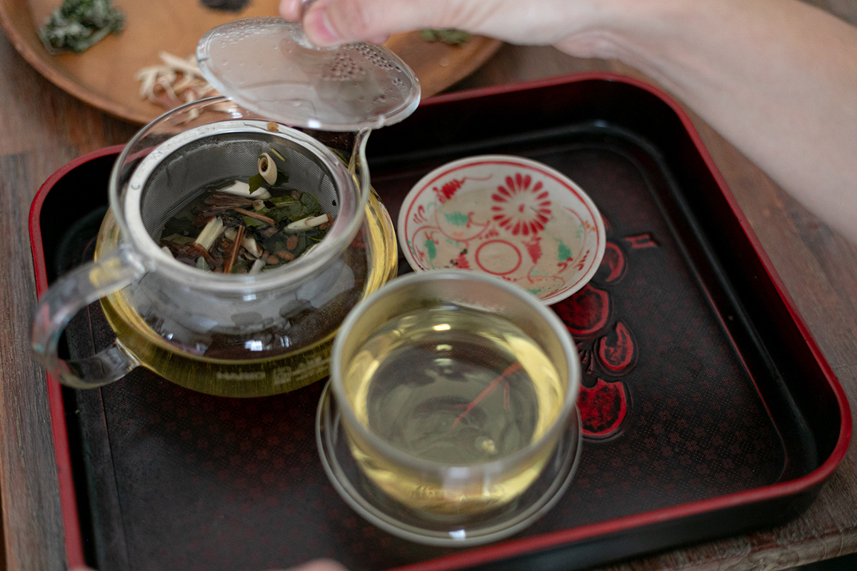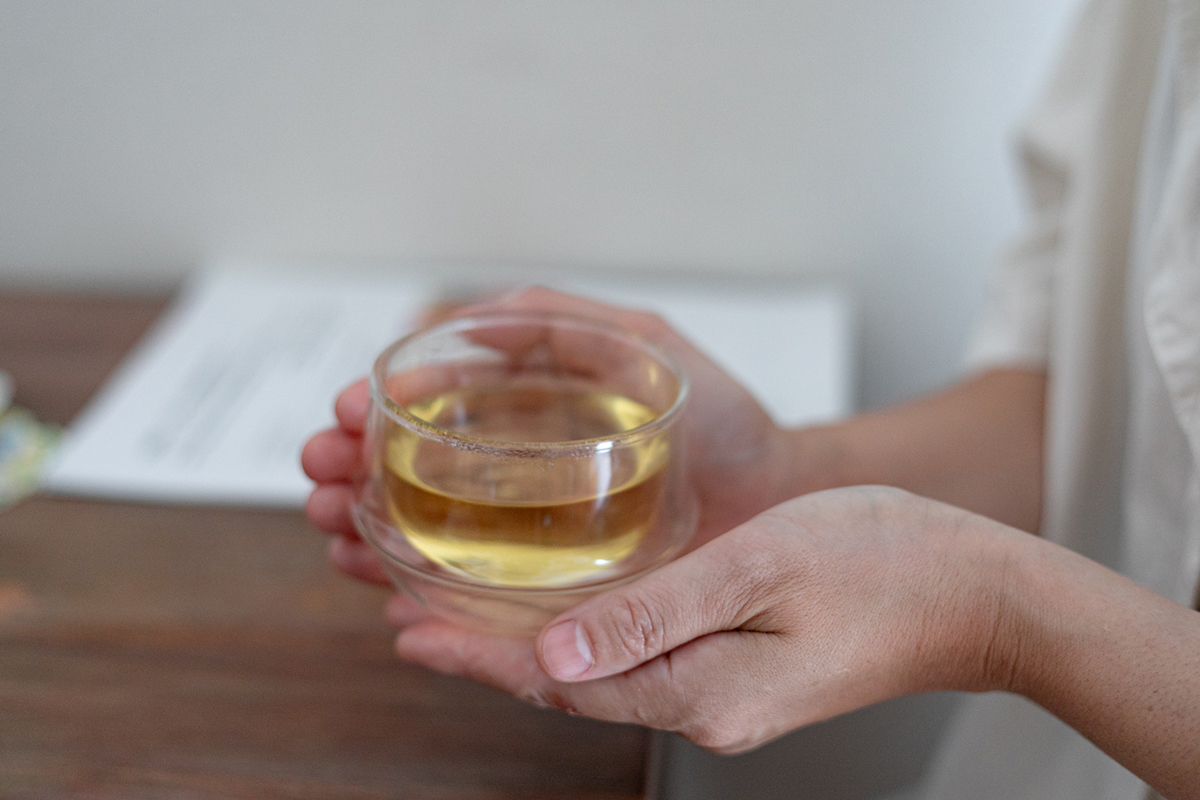 最初に提供される漢方茶は、その日の気候や受ける人の体調の悩みに基づいて先生が独自でブレンドしているそう。取材当日は湿度が高い日であったため、湿気対策におすすめのハーブをブレンドしてくれました。湿気がある日は冷たい飲み物を飲んでしまいがちですが、温かいお茶がすっと体内に入ってきて、気持ちが落ち着きました。体調の悩みについては、予約時のメールのやり取りである程度ヒアリングしてもらえます。