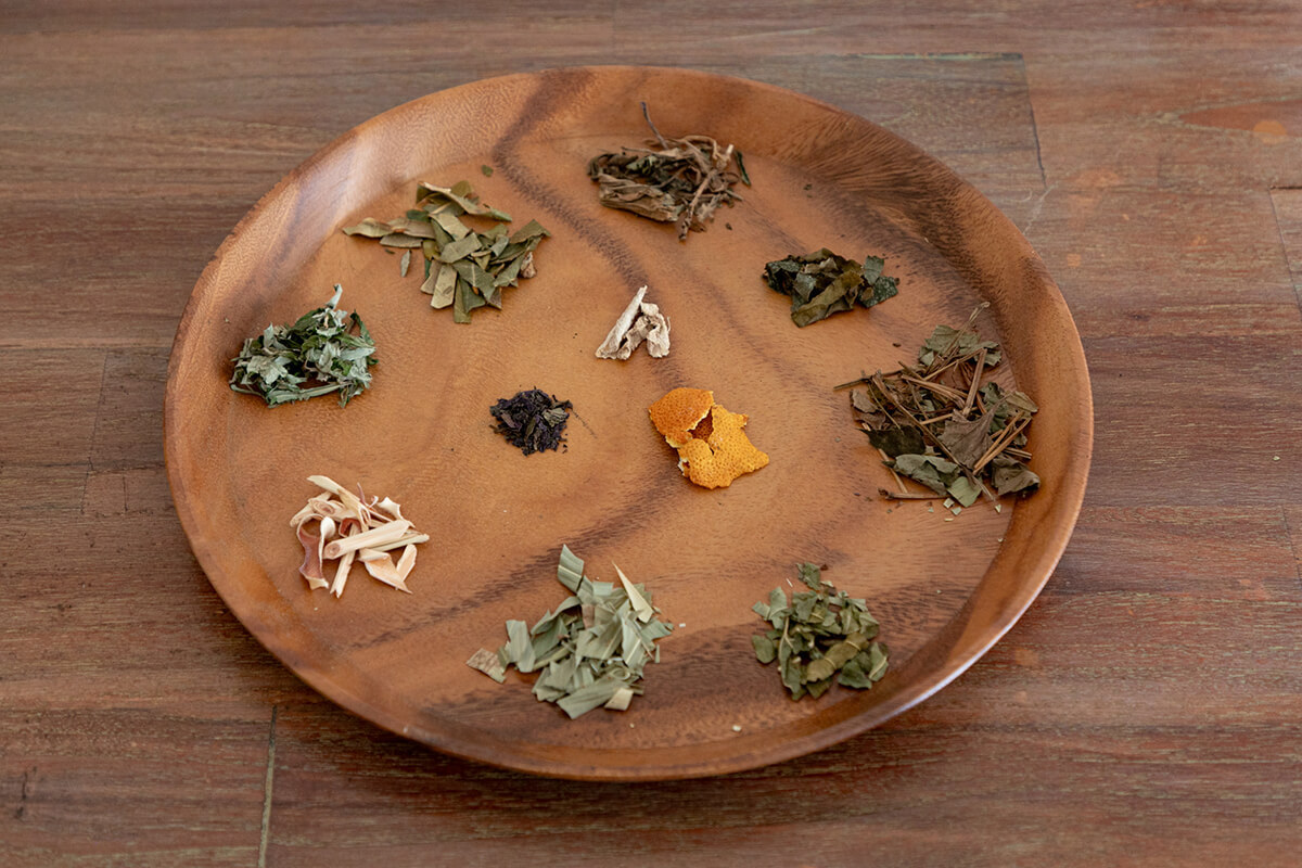 ハーブの山からひとつひとつ取りながら、どんなものか説明を受けます(ハーブはあらかじめ先生がブレンドしておいてくれています)。実物を手にしながら説明を受けると、より頭に入ってくる気がします。こんなにたくさんの種類のハーブを触る機会は普段なかなかなく、ほのかな香りや触り心地にもリフレッシュできました。