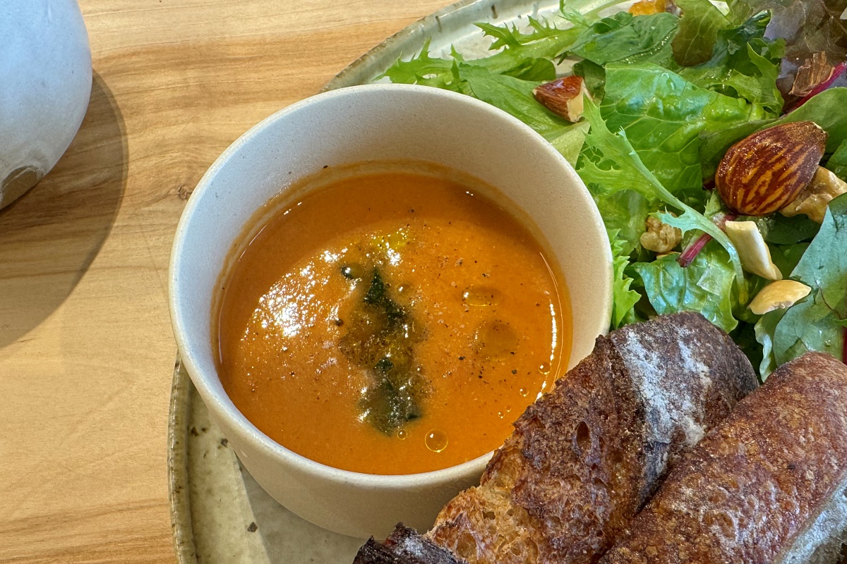 スープは夏らしく、スイカを使った「ガスパチョ」でした。