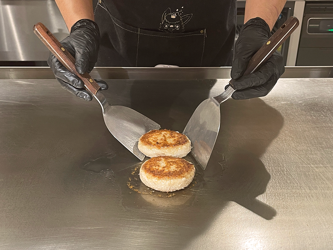 食欲をそそる香ばしい匂いが焼きあがった合図! 両面5分ずつ、しっかり蒸し焼きをして完成です。