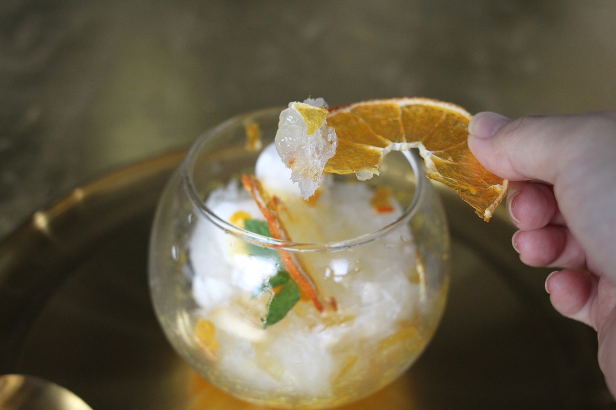 また、添えられたドライオレンジに氷をのせて、一緒にいただくのもおすすめ! シロップがほどよい甘さなので、溶けてしまった氷もジュースのように飲むことができて、最後までおいしくいただけます♪
