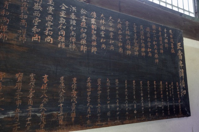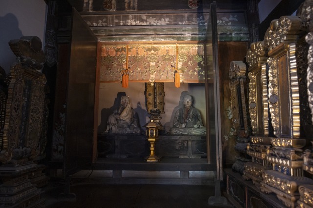 また高台寺は創建時において曹洞宗の寺院でしたが、のちに建仁寺の三江紹益(さんこうじょうえき)禅師を招き臨済宗に改宗したという歴史があります。開山堂には三江和尚やねねの兄である木下家定の像が安置されているほか、代々住職の名が刻まれた表も掲げられており、高台寺の歴史やねねの周辺の相関図を知ることができる学びの場でもあります。