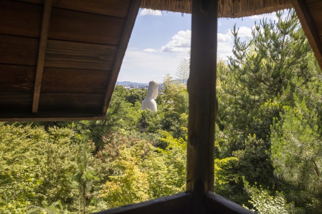 高台寺最上部にある茶室からは、大阪まで望む絶景が!