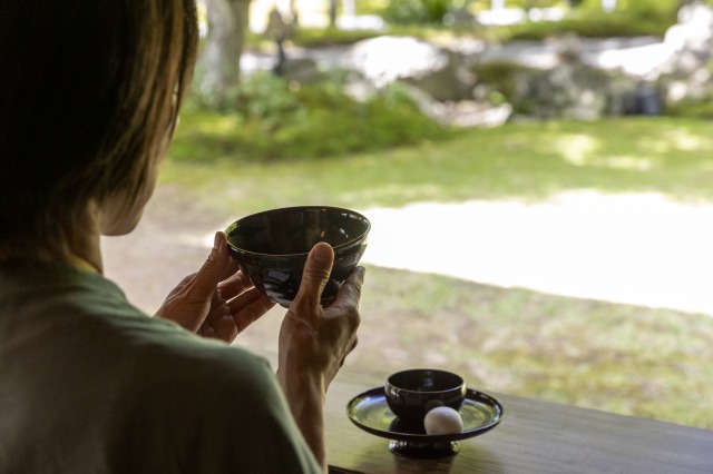 ここでは「天目台(てんもくだい)」という円錐状の台に乗った天目茶碗でお茶が供され、貴族になった気分。散策の終わりに一息ついて、秀吉とねねの仲睦まじい暮らしに思いを馳せてみてはいかがでしょう。