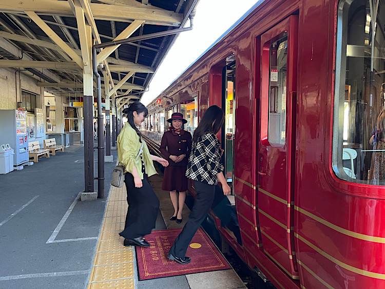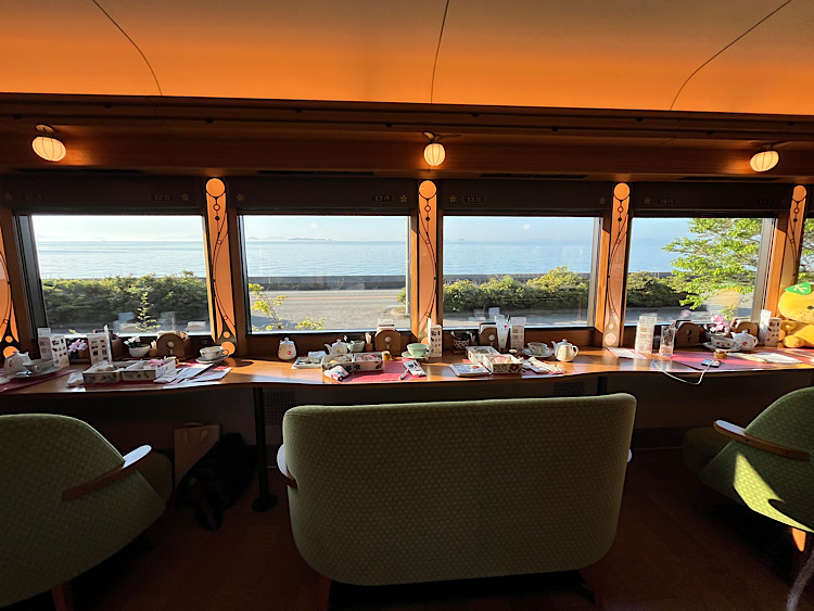 また、車内ではアテンダントさんが細やかな気配りでにこやかに旅をサポートしてくれます。緊張することなくいつもの自分のままで旅を楽しめて、あたたかい空気に包まれるので、列車を降りる頃には、いつもよりちょっと口角があがり、やさしい気持ちになっている自分に気づきました。乗ってみればきっと自分なりの「伊予灘ものがたり」の魅力を発見できるはずです。