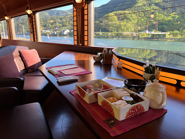④道後編 八幡浜16:14発~松山18:17着 <食事>砥部焼の箱のアフタヌーンセット