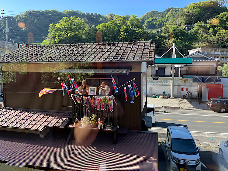 沿線で地元の人が手をふってくれる景色も、「伊予灘ものがたり」のお楽しみの一つ。手作りうちわをふってくれる人、愛犬と一緒に手をふってくれる人、お父さんと一緒に走って来る子どもたち、帽子を大きく振ってくれる練習中の野球少年たち……。車窓の美しい景色とともに地域の人たちのあたたかいおもてなしから目が離せません。ほのぼのしながら手を振り返していると、地元の人の生活のなかに10年という月日をかけてしっかり根づき、親しみをもって愛されている「伊予灘ものがたり」を感じることができます。