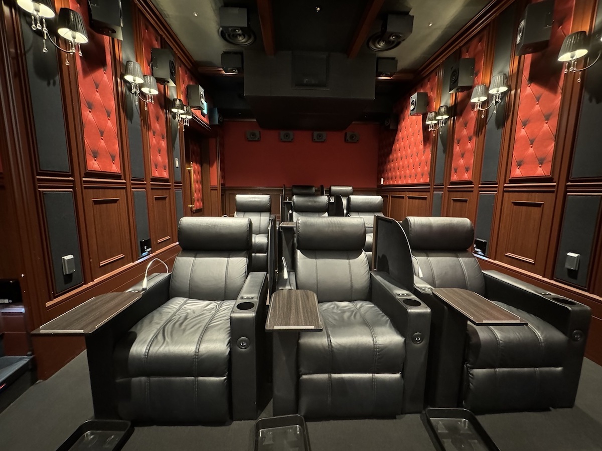 劇場内の座席はわずか9席(内1席は車椅子用スペース)! 全席高級レザーのリクライニングシートを完備しており、自分の好みの体勢で映画を観ることができます。