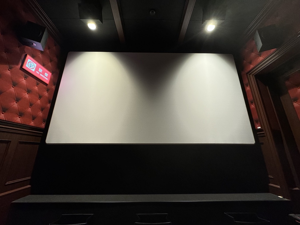 一般的な映画館のスクリーンはスクリーンの後ろにスピーカーを設置しているため細かい穴があいているそうなのですが、「シアタス心斎橋」では穴のないスクリーンを採用することで、より鮮明な映像美を楽しめます♪