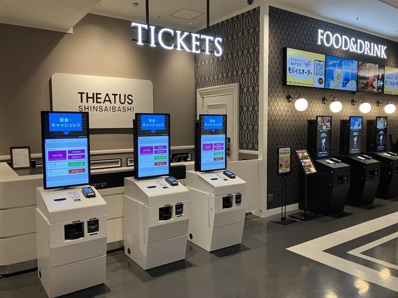 駅直結の商業施設内にあるので、仕事帰りのレイトショー鑑賞に行くときも便利。館内は白と黒を基調にしたモダンな空間で、とってもオシャレです。チケット発券機はロビーに設置されているので、上映スケジュールと空席情報をチェックしてチケットを購入するもよし。公式サイトから、オンラインで事前にチケットを購入するもよし。