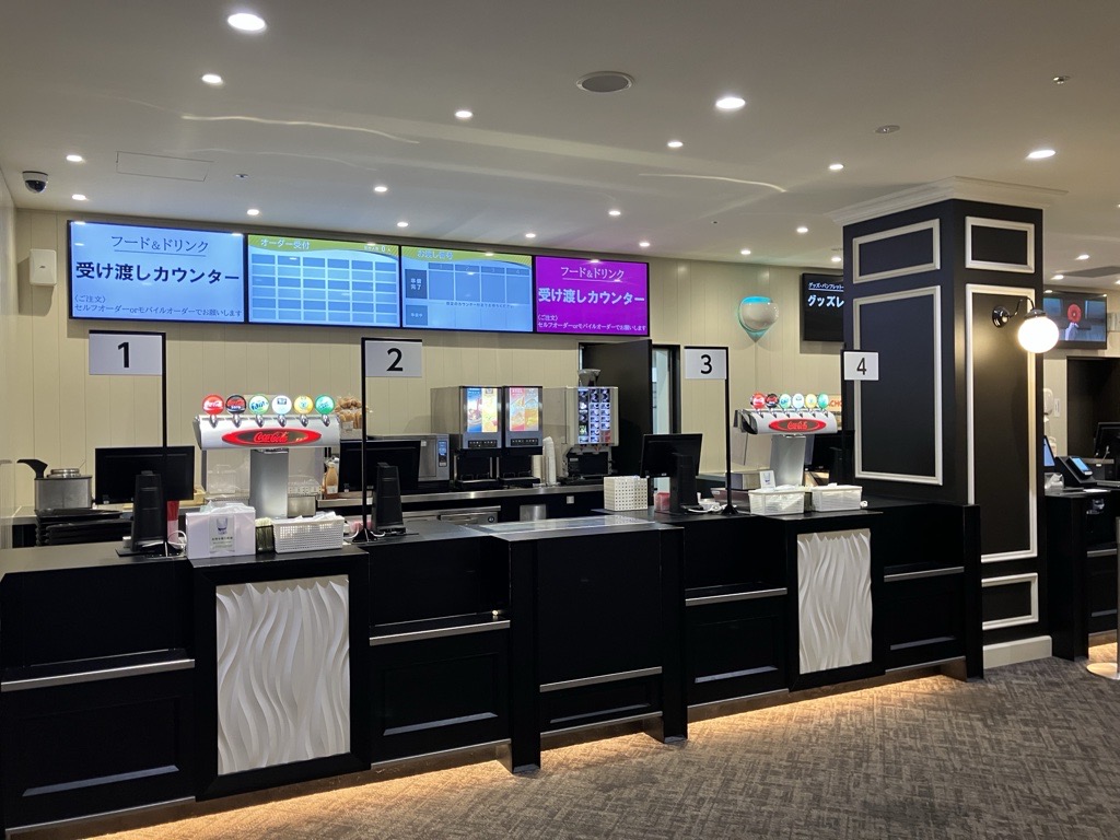 それぞれ1つずつ選べるほか、ポップコーンやホットドックなども映画が始まる前なら追加注文できます。注文したものはスタッフさんが座席まで持ってきてくれるので、劇場内に入ったらそこから動かずに過ごせます。