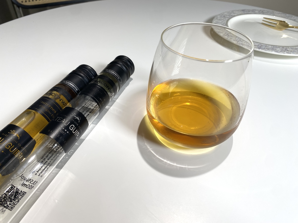 ボルドー地方の甘口ワイン「ソーテルヌ」のなかでも格付け1級であるシャトー・ギローは、トロピカルフルーツやハチミツのような華やかで香ばしい香りが特徴。干しブドウの凝縮された甘さのなかにほどよい酸味もあり、バランスのとれた飲みやすい味わいになっています。ブルーチーズの香りをワインがやさしく包み込むマリアージュは、まさに至福のひとときを過ごすのにぴったりだと感じました。