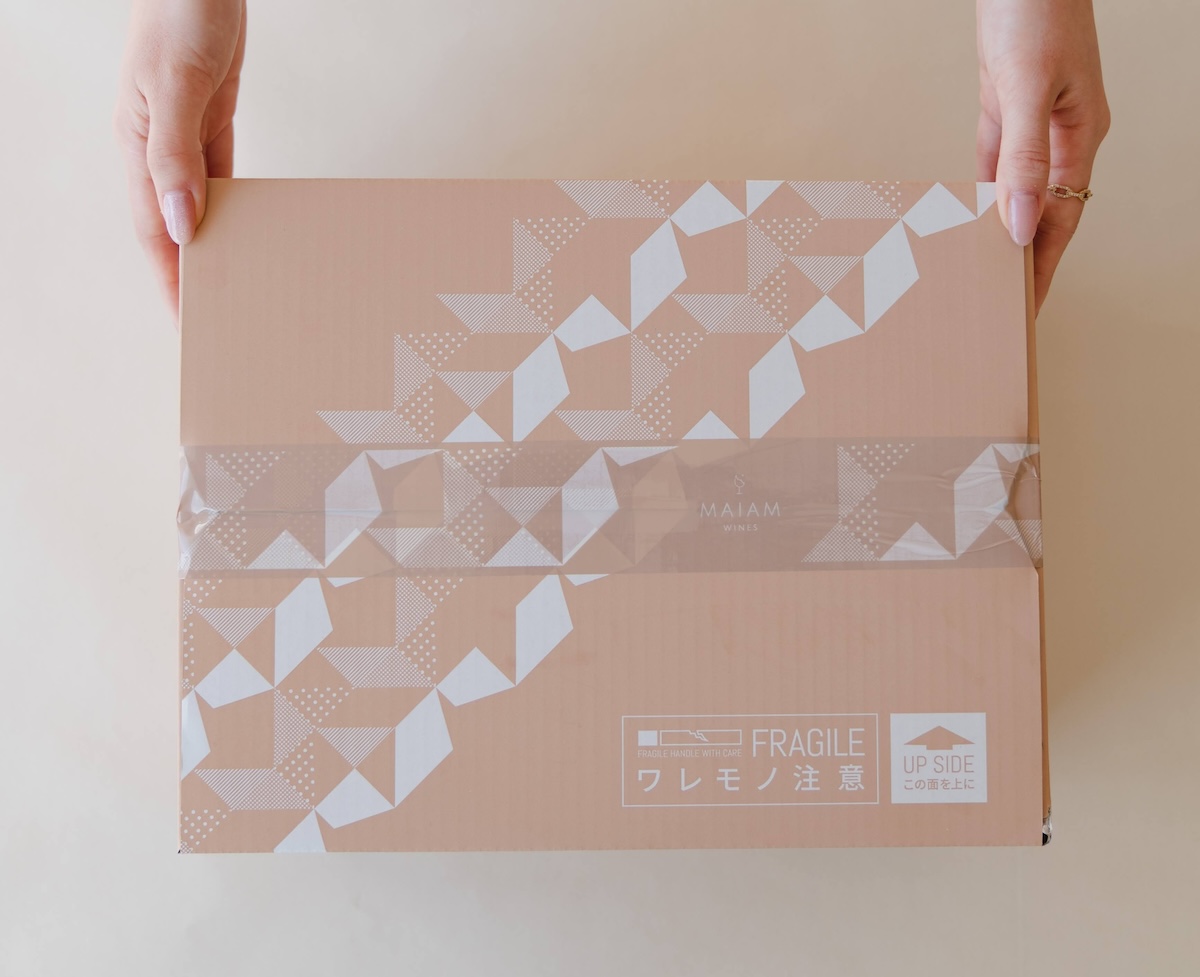 商品はMAIAM WINESのロゴ入りオリジナルダンボールに入れて配送されてきます。