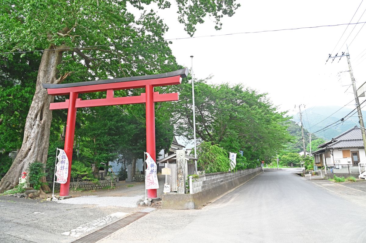 車を利用する場合、伊豆半島西海岸沿いの国道136号の宇久須南交差点で東へ曲がり、県道410号へ。1.3㎞ほど道なりに進むと、赤い鳥居が見えてきます。鳥居をくぐり、神社の境内に車を停めましょう。