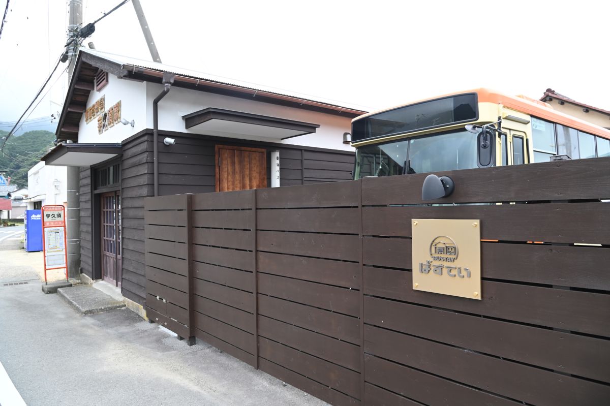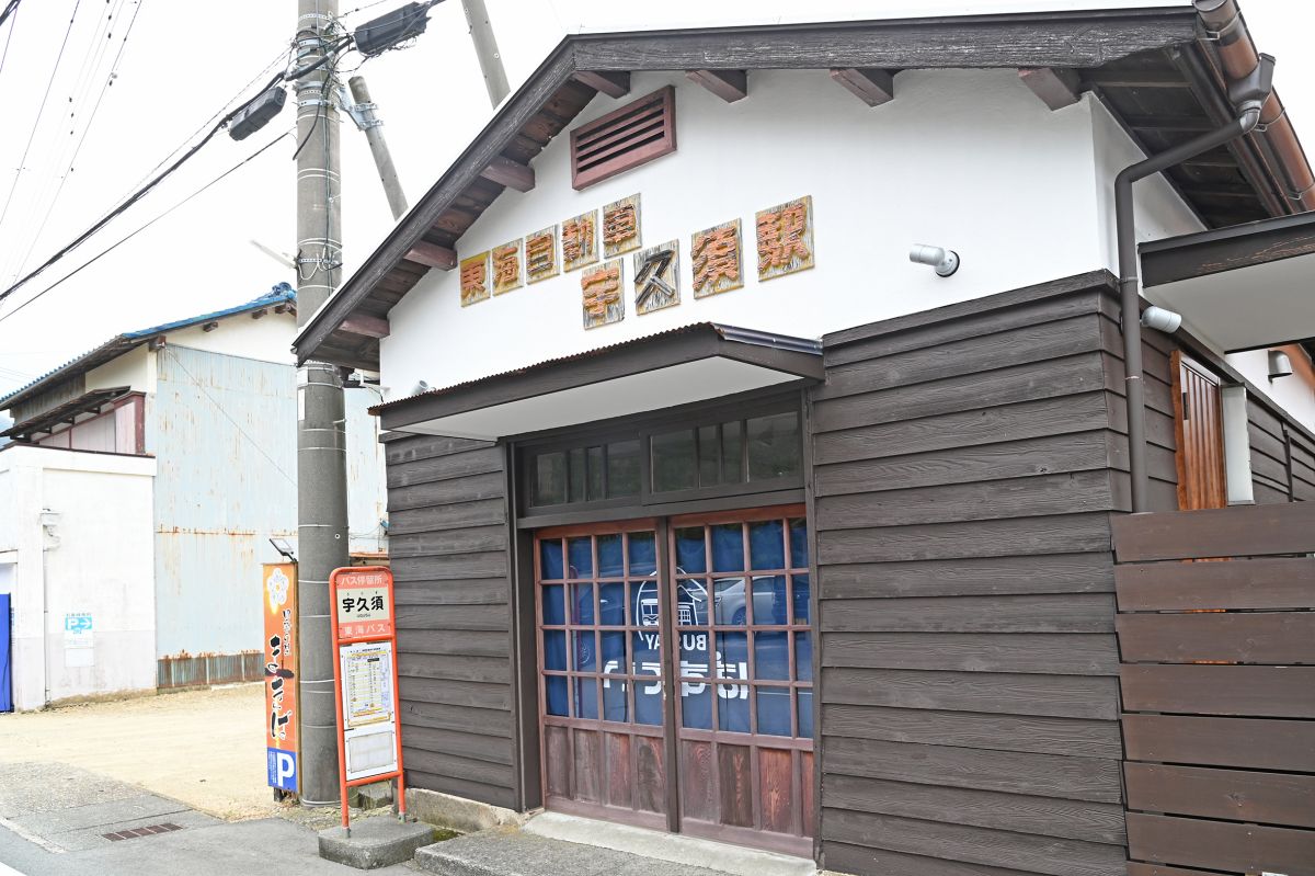 バス停「宇久須」の目の前に立つのは、かつてバスの案内所と待合室として使われていた築70年以上の建物。2022年3月にその役目を終え、2023年11月に宿泊施設「ばすてい」として生まれ変わりました。