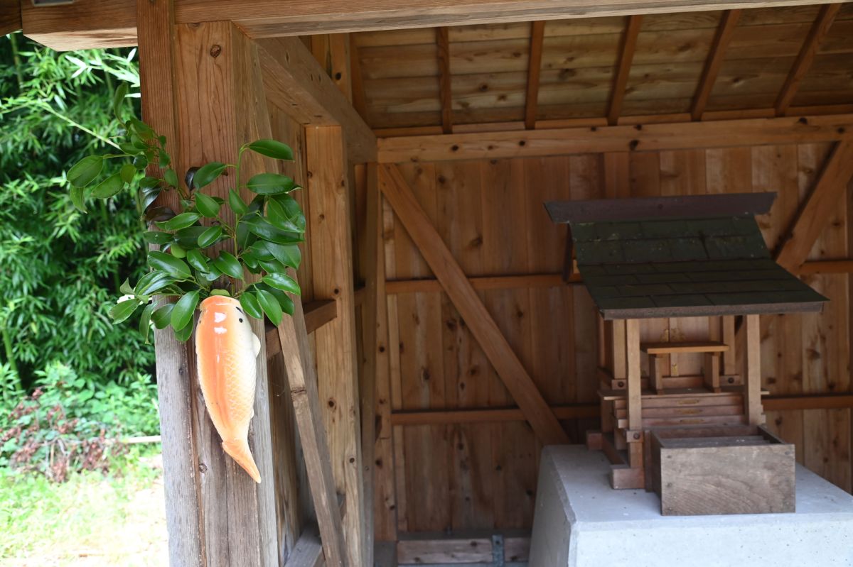 拝殿の横には境内社の柴山神社、境内入口の鳥居の横にはお地蔵さまがたたずんでいます。