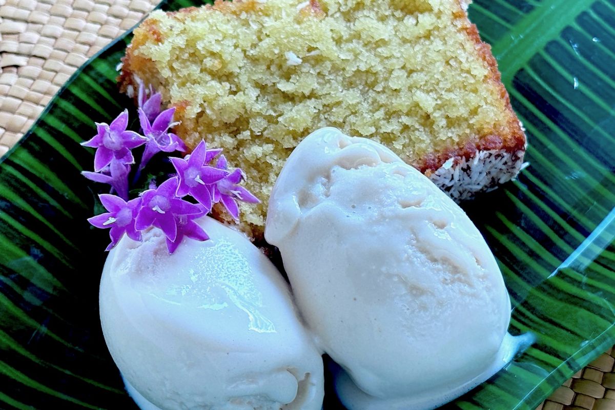 今回ご紹介している田辺農園バナナを使ったアイスとパウンドケーキを一皿に盛り付けていただきます!