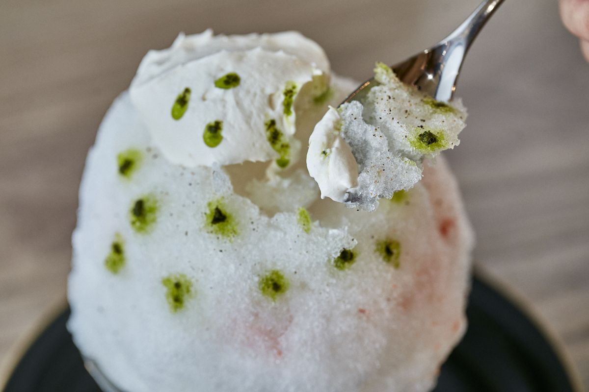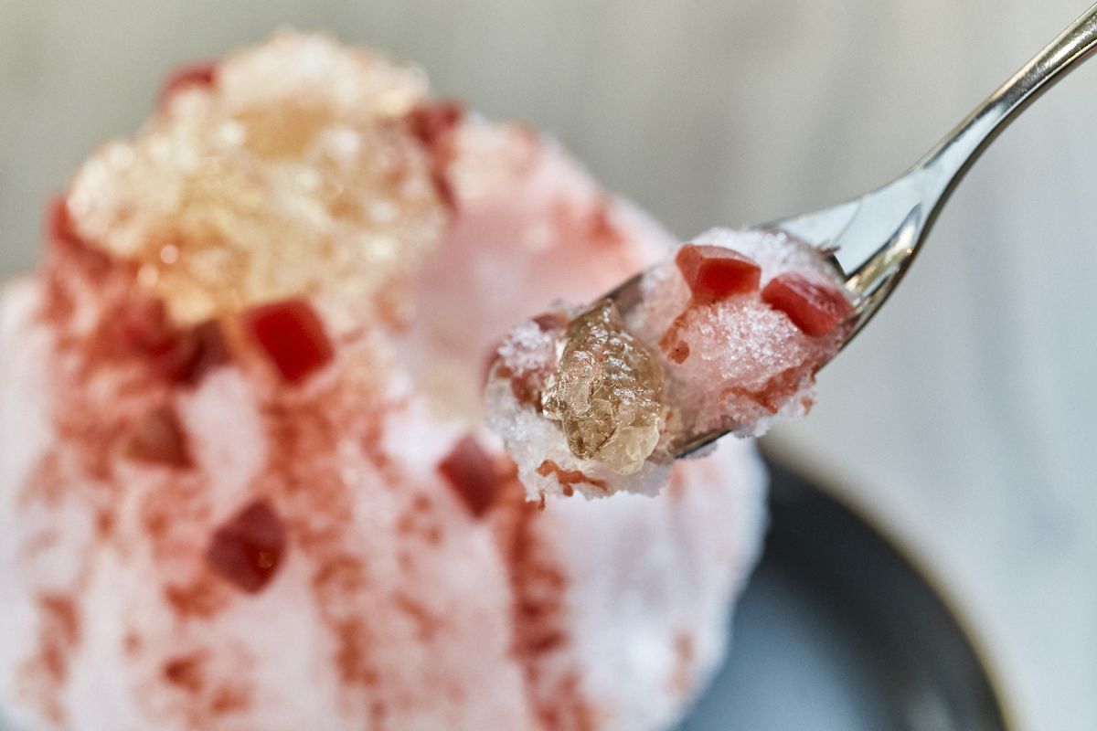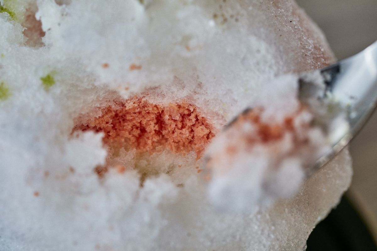 梅だけで、1杯のかき氷の中でこれだけの味の変化を感じられること、味の奥行きに驚き。梅の香りとシロップの甘さ、梅肉の塩っけがバランスよく、カリカリ梅の食感はアクセントに。口の中にすぅっと梅が広がり、後味もすっきり。塩分も利いていて熱中症対策にもなりそう。そして奥まで食べ進めると、梅のゼリーがたっぷり。このゼリーがしゅわしゅわっと舌先を刺激します。