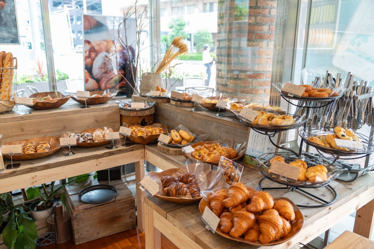 1階にはパンの販売コーナーも。この日は平日にも関わらず、開店と同時に多くのお客さんがパンを目当てに訪れていました。クロワッサン系のパンはお店で焼いているのだそう。