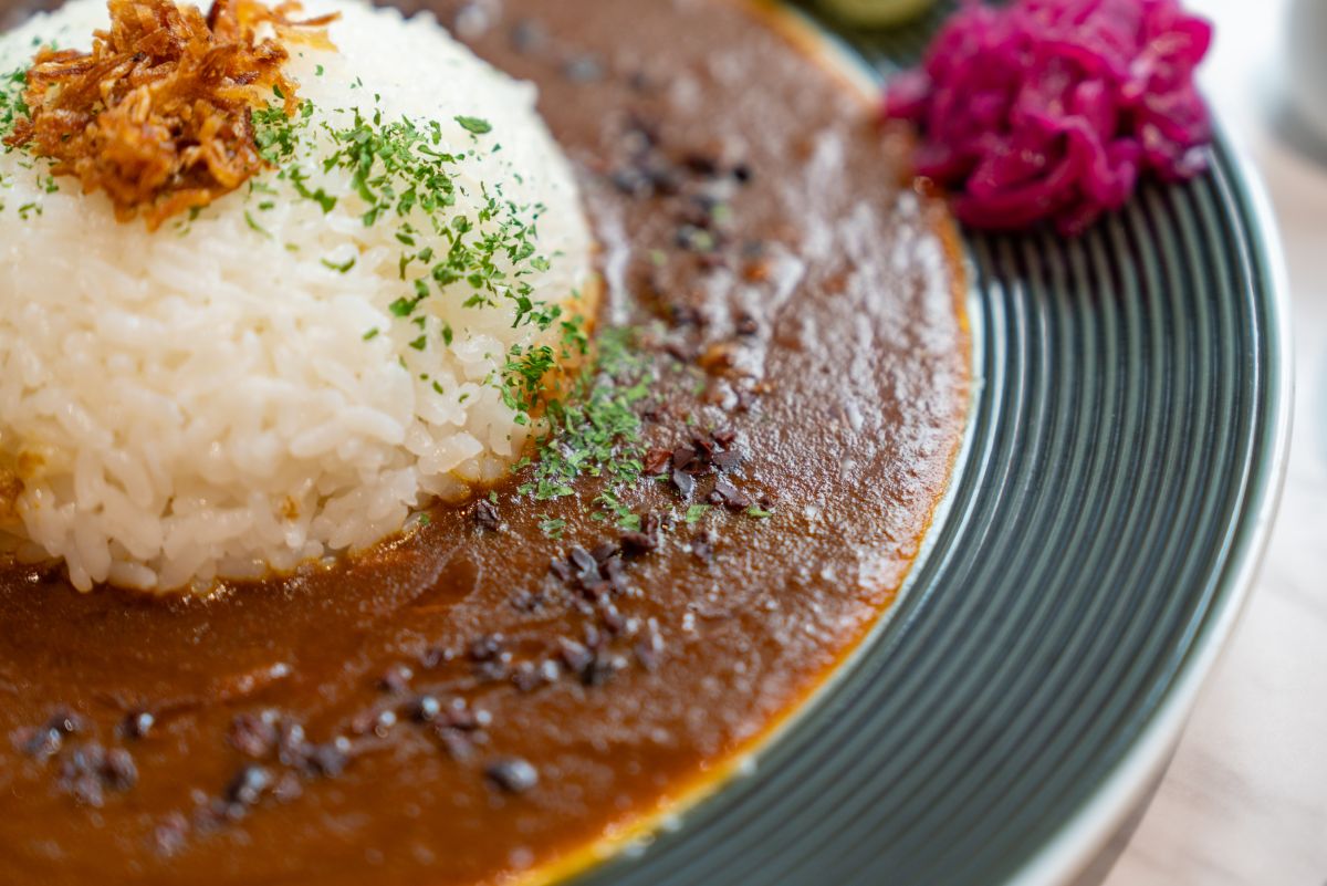 特徴はカレーの中にチョコレートの原料で、スーパーフードでもあるカカオニブがトッピングされていること。カカオ100%のため甘さはなく、食感や風味の変化とカレーのコクを深めてくれる役割があります。