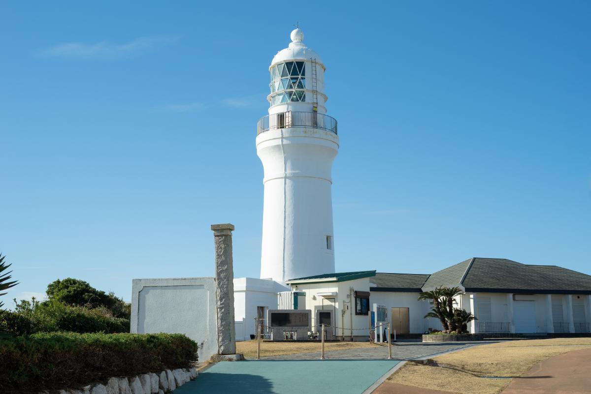 「御前埼灯台(おまえさきとうだい)」は、国内にある「のぼれる灯台」16基のうちのひとつです。その歴史は江戸時代まで遡り、寛永12年(1635)に徳川幕府が、当時灯台の役割を担っていた「見尾火燈明堂(みおびとうみょうどう)」をこの地に建設。その後、イギリス人技師の設計により西洋式の灯台に建て替えられ、戦災復旧工事などを経て現在の姿になりました。