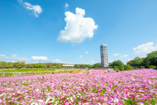3000種類もの四季折々の花々が園内を彩るフラワースポット。サクラやチューリップ、バラ、フジ、ハナショウブなど、季節ごとの花のリレーが楽しめます。7月からはハスやキバナコスモスが見頃に。どんな花が咲いているか探しながら、広大な敷地内を散策してみてくださいね。