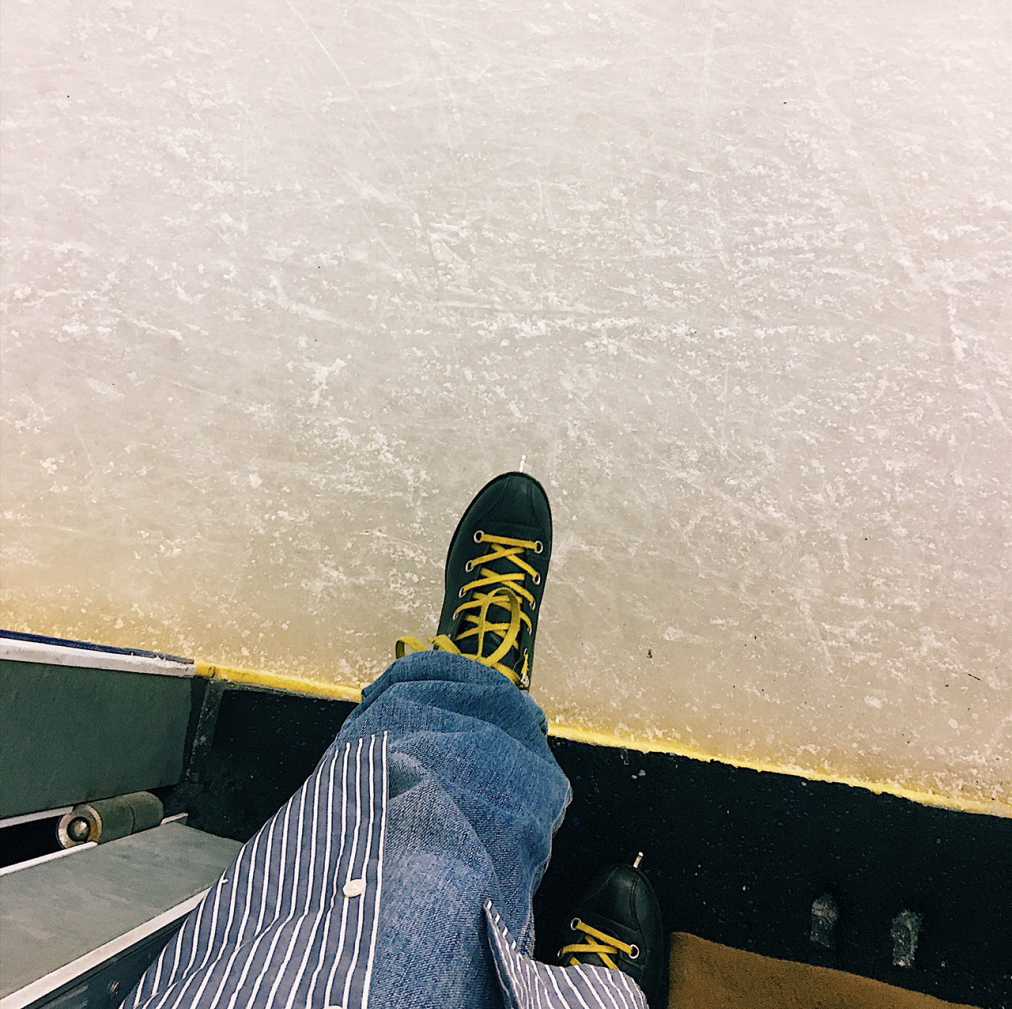 準備ができたら、いざリンクへ!当たり前ですが場内は氷が溶けないように冷やされています。ずっとリンクにいると徐々に体が冷えてくるので、春夏でも羽織りものはマスト!動きやすいパンツスタイルも必須です。