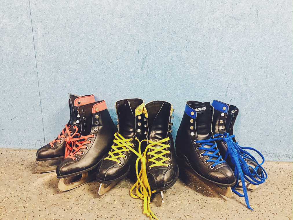 スケート靴は510円で借りることができます。貸出窓口に履き方が書いてあるので、初めての人も安心。サイズによってカラーが異なるので、同行者とサイズが違えば靴の集合写真を撮るのもかわいくておすすめ!