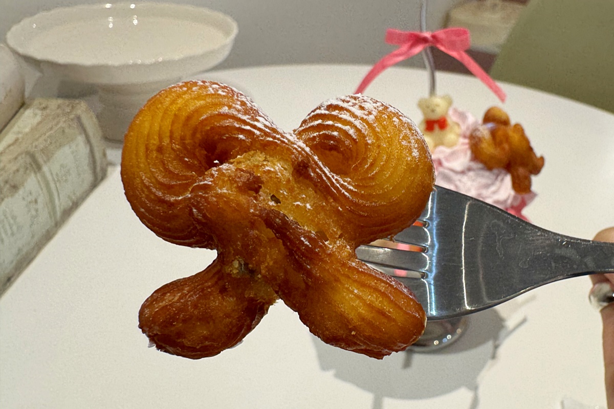 チュロスはオーダーごとに揚げてくれるからアツアツ。