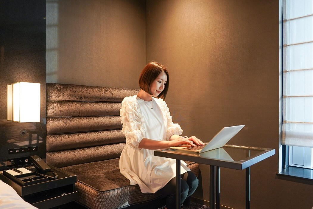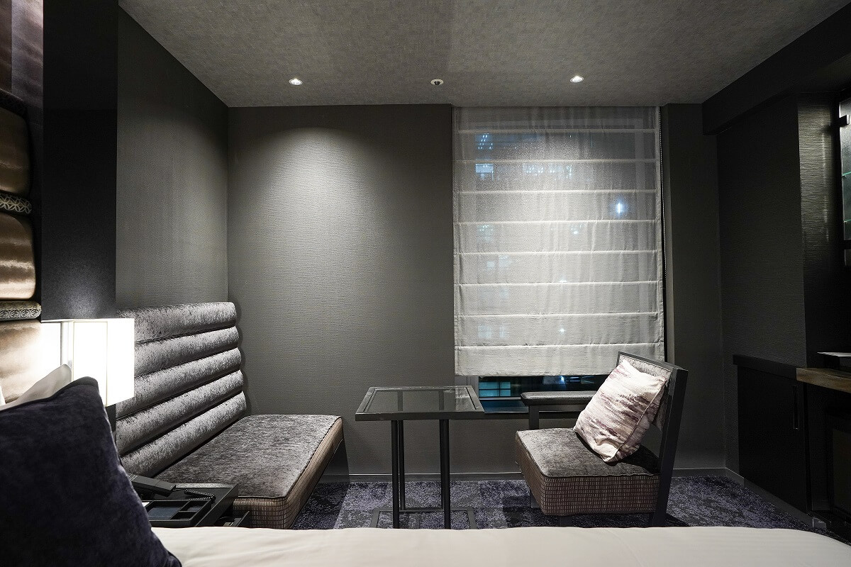ダークカラーで落ち着く客室ですが、日中は明るく、客室によっては中央通りなどの日本橋らしい街並みを眺めることができます。