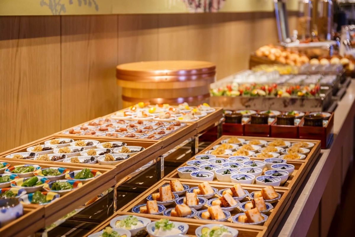 目でも舌でも楽しめる華やかな朝食。和総菜がずらりと並んでいて選ぶのも楽しい!
