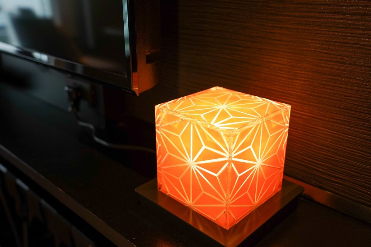 フロントがある9階に着いたと同時に目の前に現れるキラキラと輝くガラスのアート。