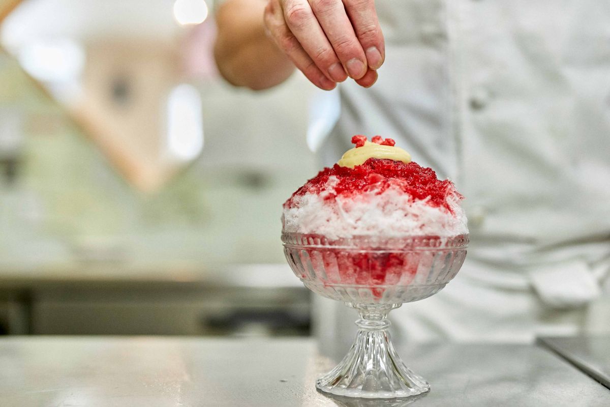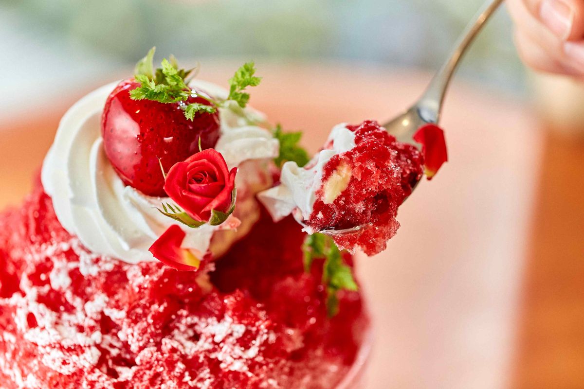 鮮やかな赤に魅了されるかき氷「苺と薔薇」