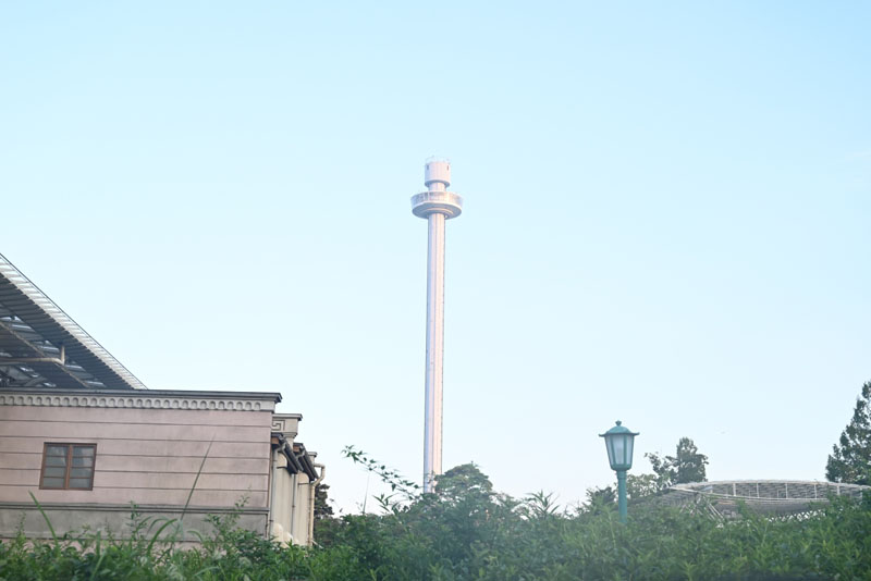 今回のイベントでは、園内にあるメリーゴーラウンド、回転空中ブランコ、富士見天望塔の3つのアトラクションが『【推しの子】』とコラボ。というわけで、「夕日の丘商店街」を抜けた筆者はまず富士見天望塔へ。