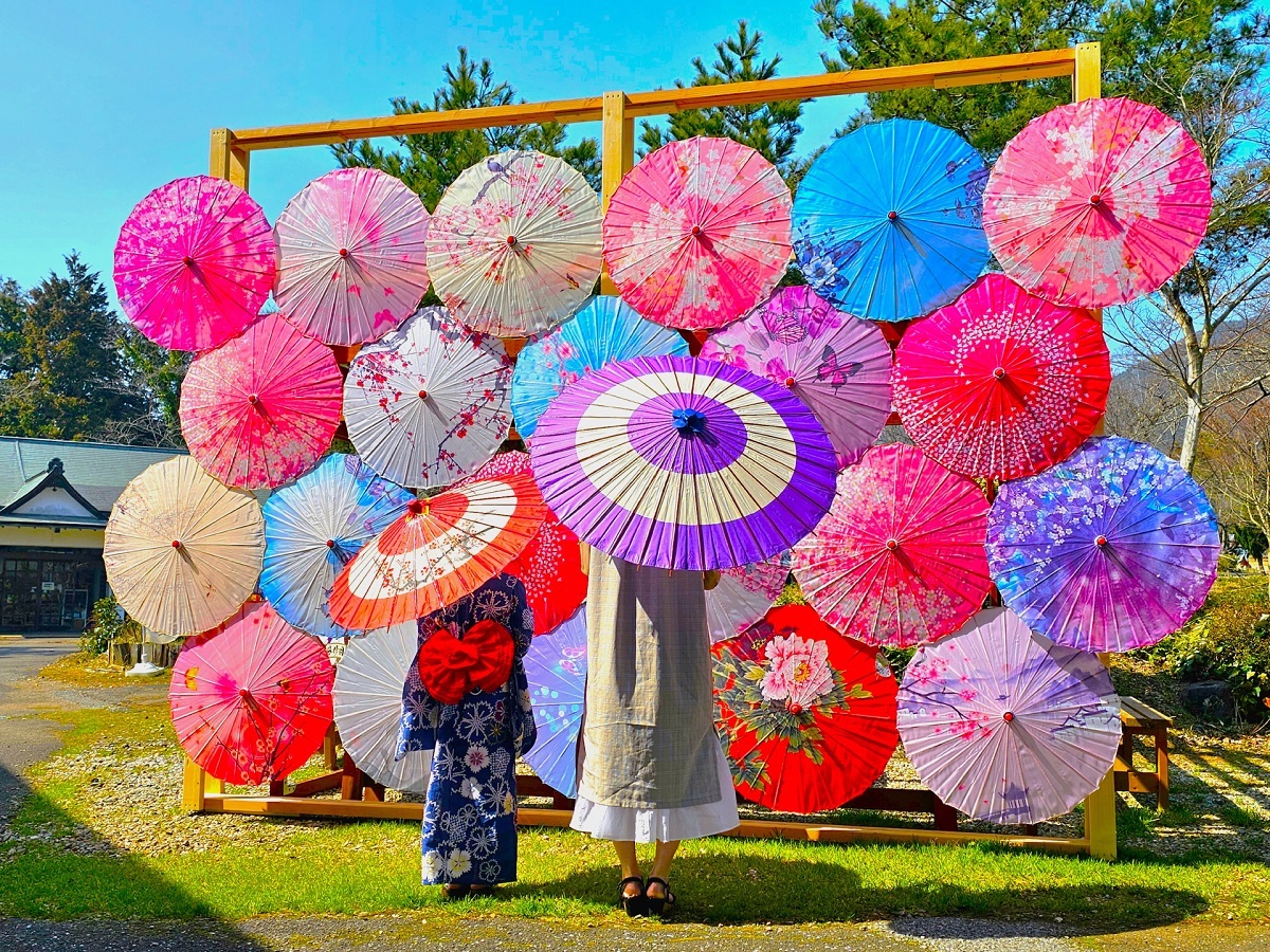 昼は和傘に陽の光が入ってきれいに写ります。和服を着ての撮影も雰囲気が出るのおすすめ。夜にはライトアップも行われており、昼とはまた違った幻想的な雰囲気も楽しめちゃいます! 和傘レンタルも行われているので、恋人や友達と素敵な1枚を撮ってみては?