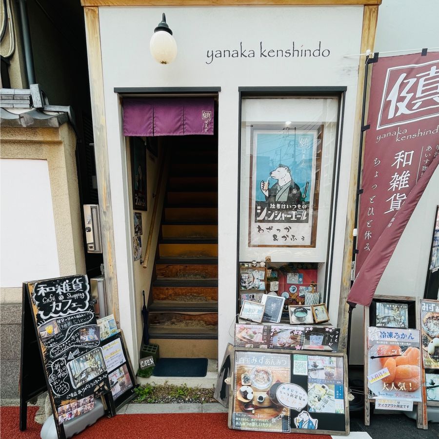 JR日暮里駅から徒歩4分、東京メトロ千駄木駅から徒歩5分。谷中銀座商店街にある「やなか健真堂(けんしんどう)」は、和雑貨&和小物店を併設する、土・日曜、祝日のみ限定で営業している和カフェです。