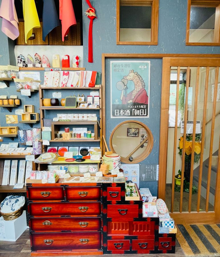 店内には、和を感じる懐かしい色合いの和雑貨や和小物がずらり。お店オリジナルのグッズも並びます。