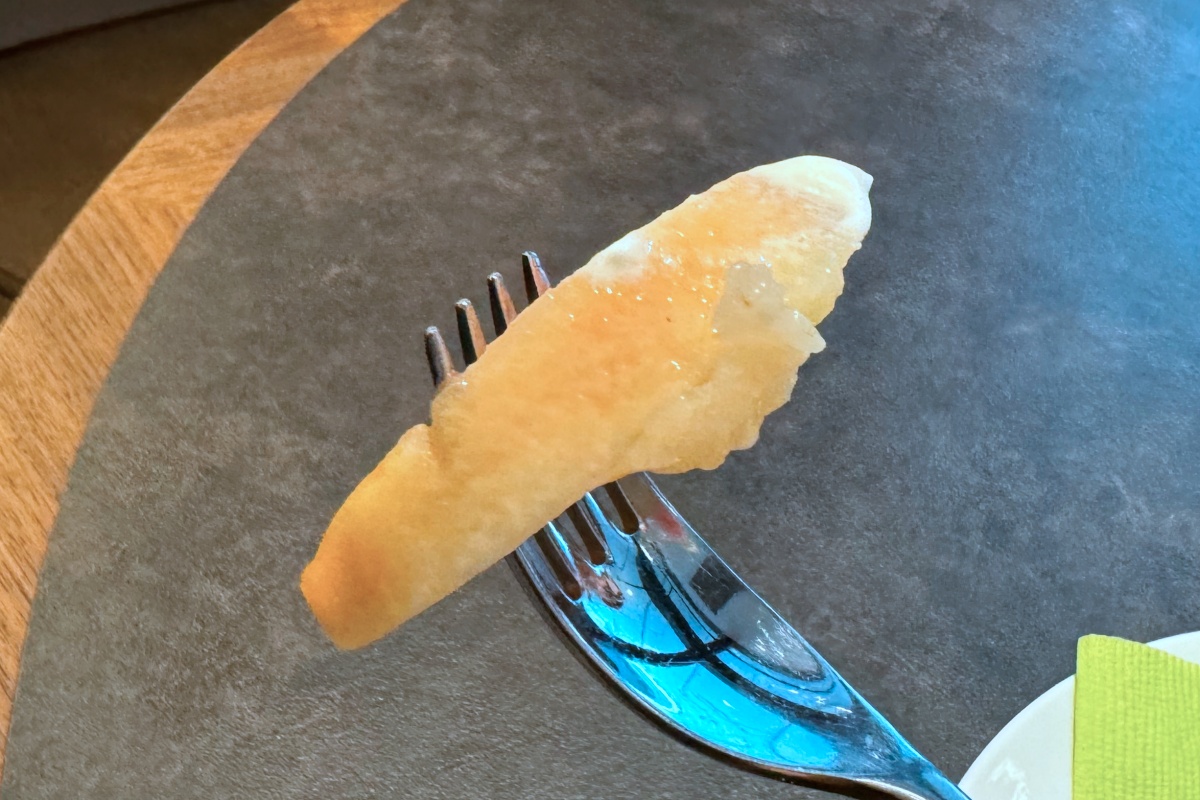 こちらは定番メニューの「クレームキャラメル」682円。いわゆるカスタードプリンですが、色が濃くしっかりとした味わいの「紅玉子(くれないたまご)」と、バニラビーンズをふんだんに使用しているのが特徴です。