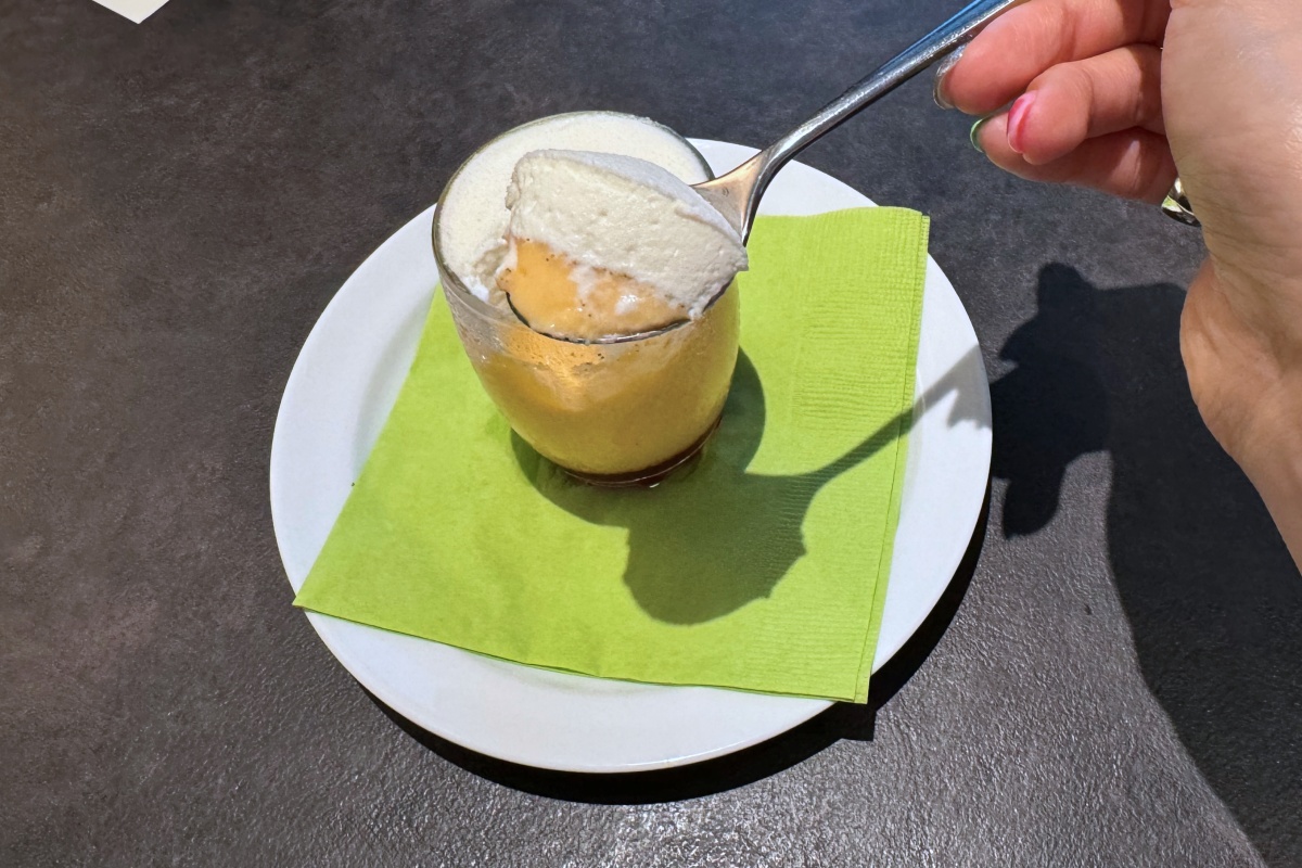 パフェはフレッシュな桃をはじめ「桃のソルベ」や「すももとヨーグルトのソルベ」、「桃のコンポート」など14層で構成されています。