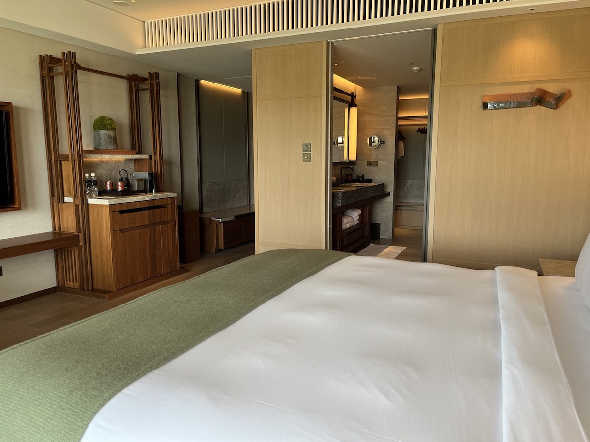 部屋は50㎡とゆったりとした広さで、入口、ベッドルーム、バスルーム、洗面、クローゼットがぐるりと一周できる機能的なつくりです。現代の茶室をテーマにしたしつらえは、あらゆるシーンで京都にいることを実感できます。