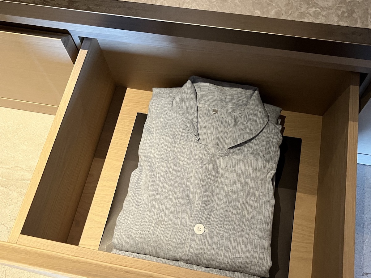 オリジナルのパジャマは、ジャガード織仕上げのやわらかい素材で肌ざわりもよく、ホテルブティックで購入していく人も多いとか。